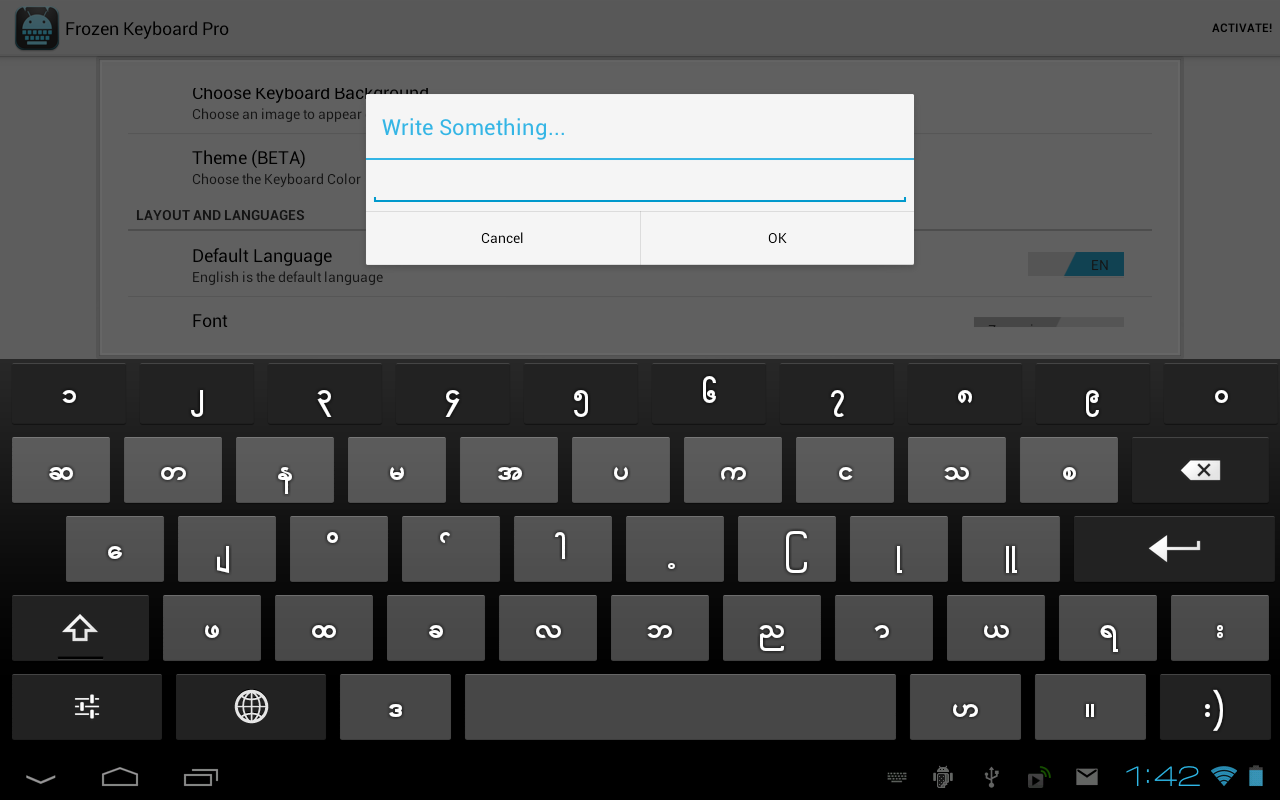Android phone/Tablet ကုိင္ေဆာင္သူမ်ားအတြက္ မတ္လ(၇)ရက္ေန႕မွာ အသစ္ထြက္ရွိလာတဲ့ Frozen Keyboard Pro v 1.0.8 ကုိတင္ေပးလုိက္ပါတယ္။Frozen Keyboard Pro ဟာျမန္မာစာရုိက္ကူးရလြယ္ကူေစျပီး ယူနီကုဒ္ေဖာင့္ႏွင့္ေဇာ္ဂ်ီေဖာင့္ႏွစ္မ်ဳိးလုံးပါ၀င္ပါတယ္။အခုအသစ္ထြက္ဗားရွင္းမွာ Themes အသစ္မ်ားပါ၀င္ျပီး မိမိစိတ္ၾကဳိက္ Themes မ်ားကုိလည္း Keyboard background မွာဖန္တီးႏုိင္ပါေသးတယ္။လိုအပ္ရင္ Emojis မ်ားကုိပါအသုံးျပဳရတာေၾကာင့္သုံးစြဲသူမ်ားအဆင္ေျပေစတာေတြ႕ရပါတယ္။အသုံးျပဳလုိသူမ်ားအေနနဲ႕ Google Play Store မွာ SGD2.54 ျဖင့္၀ယ္ယူသုံးစြဲႏုိင္ပါျပီ။